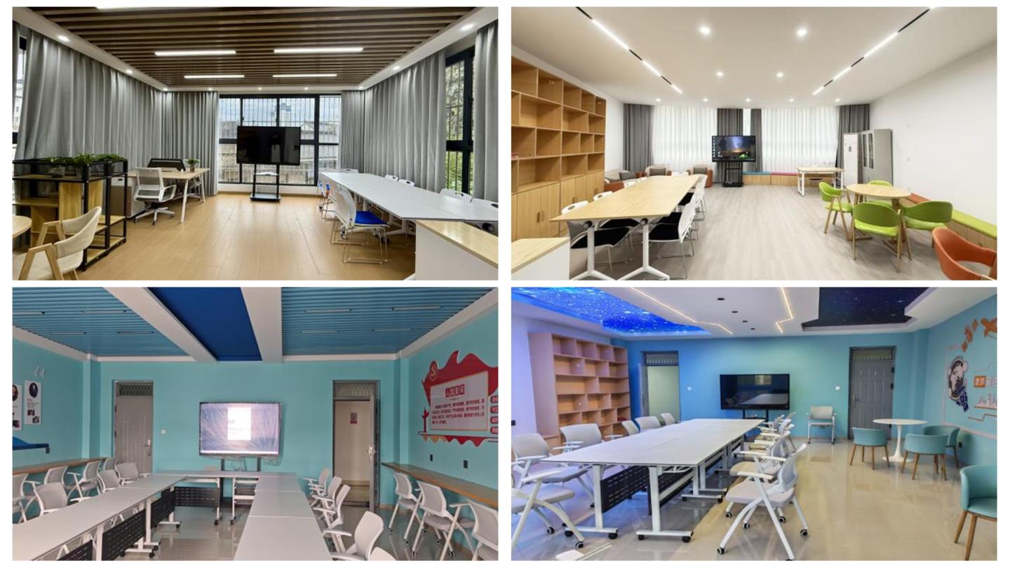 “寓”見系列服務(wù)空間按照“一室多能”的設(shè)計(jì)原則,打造了集黨團(tuán)活動、談心談話、學(xué)業(yè)指導(dǎo)、就業(yè)服務(wù)、心理咨詢?yōu)橐惑w的復(fù)合型物理空間,為引導(dǎo)黨建力量、育人團(tuán)隊(duì)、文化活動貼近學(xué)生開辟了新場域,打造了思政教育高地、師生交流陣地、文化交互基地、生活服務(wù)園地。