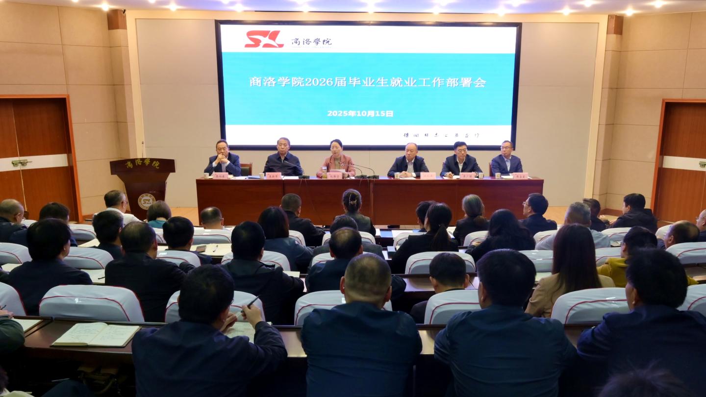 10月15日下午,我校召開(kāi)2026屆畢業(yè)生就業(yè)工作部署會(huì),校長(zhǎng)、黨委副書(shū)記權(quán)雅寧,黨委副書(shū)記王新軍,副校長(zhǎng)張向東及商洛市人社局、工商聯(lián)、人才中心等相關(guān)單位負(fù)責(zé)人出席會(huì)議。校內(nèi)各職能部門(mén)負(fù)責(zé)人,二級(jí)院(部)黨政主要負(fù)責(zé)人、副書(shū)記,各學(xué)院學(xué)工辦主任、全體輔導(dǎo)員共同參加會(huì)議。會(huì)議由王新軍主持。