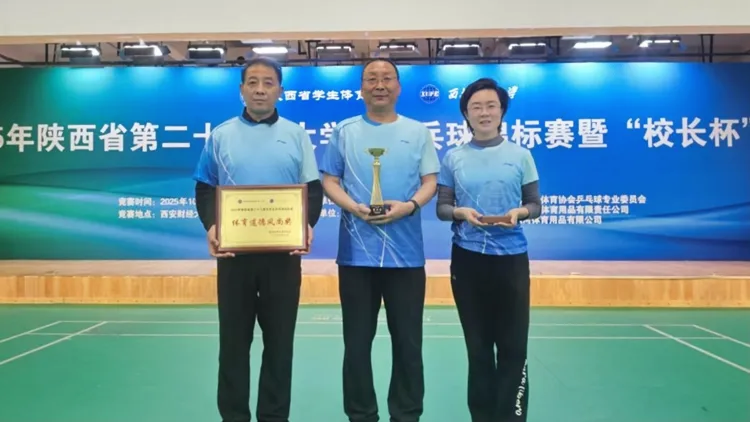 10月25日至26日,由陜西省學(xué)生體育協(xié)會(huì)主辦、西安財(cái)經(jīng)大學(xué)承辦、省學(xué)生體協(xié)乒乓球?qū)I(yè)委員會(huì)協(xié)辦的2025年陜西省第二十九屆大學(xué)生乒乓球錦標(biāo)賽暨“校長(zhǎng)杯”比賽在西安成功舉辦。由校黨委副書記劉寶盈、王新軍,副校長(zhǎng)程敏組成的商洛學(xué)院代表隊(duì)榮獲“校長(zhǎng)杯”乒乓球團(tuán)體賽(甲組)第七名及體育道德風(fēng)尚獎(jiǎng)。副校長(zhǎng)程敏在單項(xiàng)賽中獲得女子組(甲組)第一名,將代表陜西高校征戰(zhàn)第十九屆中國(guó)高校“校長(zhǎng)杯”乒乓球比賽。