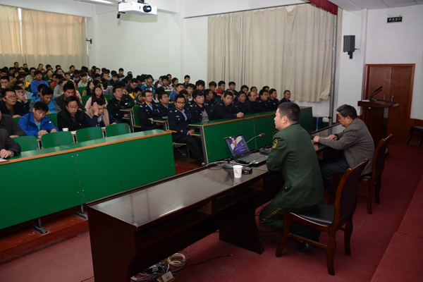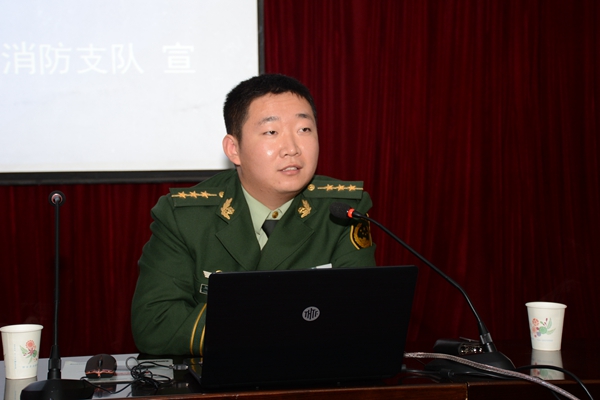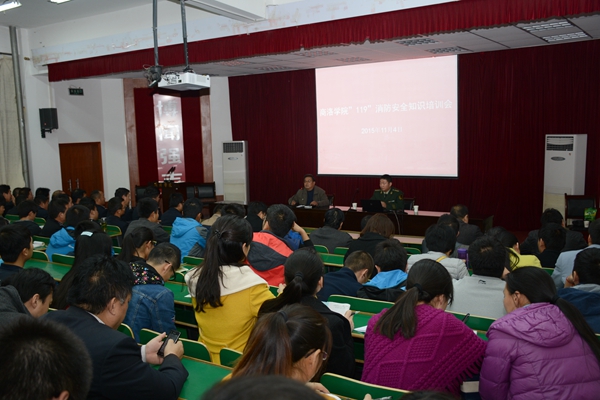 保衛(wèi)處副處長房喜峰主持培訓會,校內(nèi)各單位消防安全員、實驗員、消防控制室工作人員、機房管理員、公寓樓層服務(wù)員、食堂經(jīng)理及安全管理人員、輔導員、2015級各班安全委員或班長、校衛(wèi)隊員和學生護校隊員等230多人參加了培訓。