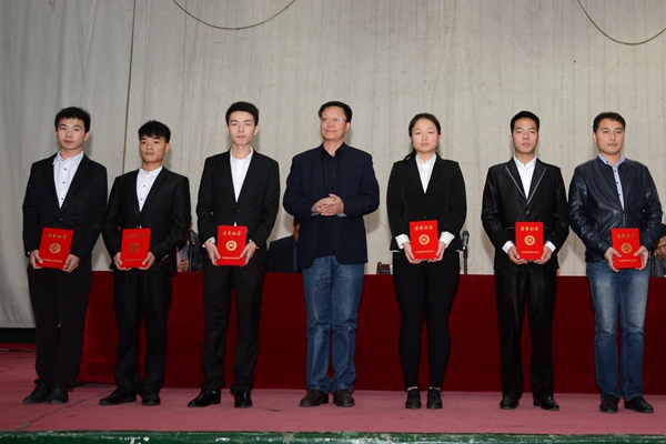 在熱烈的掌聲中,石啟英、李繼高、楊建峰、劉勇分別為獲獎(jiǎng)的指導(dǎo)教師與學(xué)生頒發(fā)證書和獎(jiǎng)金。