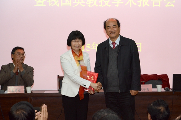 劉建林在聘任儀式上回顧了錢國英教授與我校的深厚情誼和對我校的熱情幫助,介紹了錢國英教授在高等教育教學(xué)研究方面的杰出成就。他說,商洛學(xué)院發(fā)展到今天,已經(jīng)完全融入到了本科教育的行列,正在以“穩(wěn)基、提質(zhì)、增速”,創(chuàng)新驅(qū)動發(fā)展的新常態(tài),確保學(xué)校在中國高等教育深化改革的洪流中不落伍、出成績。在這個過程中,賈平凹先生,侯洵、劉加平院士,教育部本科教學(xué)研究中心吳博主任、錢國英校長和西北大學(xué)高勝利教授等各界人士給予了我們巨大幫助與支持。我校師生員工要懂得感恩,牢記以錢國英教授為代表的專家學(xué)者對我們的幫助,把這些幫助轉(zhuǎn)化為工作動力,在各自崗位上為學(xué)校的創(chuàng)新發(fā)展做出自己應(yīng)有的貢獻。