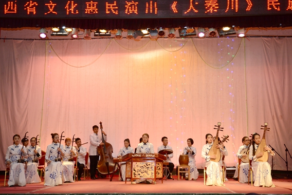 本次音樂會分民族器樂和聲樂表演兩大部分,既有充滿民族風情的秦腔、民歌演唱,又有板胡、二胡、嗩吶、笛子等民族特色樂器演奏。音樂會以一曲高昂、豪邁的二胡齊奏《戰(zhàn)馬奔騰》開場,《西部放歌》《秦腔牌子曲》《秦川抒懷》、《大秦川》《花好月圓》等曲目次第登場。其旋律時而柔和,時而歡快,時而磅礴,時而激昂。歌唱家們以其深厚的唱功,高亢的音調(diào)、優(yōu)美的音色,豐富的感情將歌曲中的豪放粗獷、激情澎湃、蕩氣回腸等特色表現(xiàn)得淋漓盡。演奏家們高超的技藝,將二胡、琵琶、嗩吶等民族樂器發(fā)揮到極致,帶領(lǐng)觀眾們領(lǐng)略中華傳統(tǒng)民族音樂的風情。在一首壯懷激烈的民族管弦樂《好漢歌》中,音樂會圓滿落下帷幕。