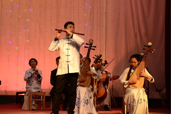 12月16日,由宣傳部、團委和學生處承辦的陜西文化惠民演出《大秦川》民族音樂會在大學生活動中心隆重舉辦。青年歌唱家、陜西民族樂團團長沙莎帶領(lǐng)樂團成員為我校觀眾們表演了《戰(zhàn)馬奔騰》等名歌名曲。校黨委書記、校長劉建林,紀委書記王思懷,副校長魏書堂和師生們一同觀看了演出。