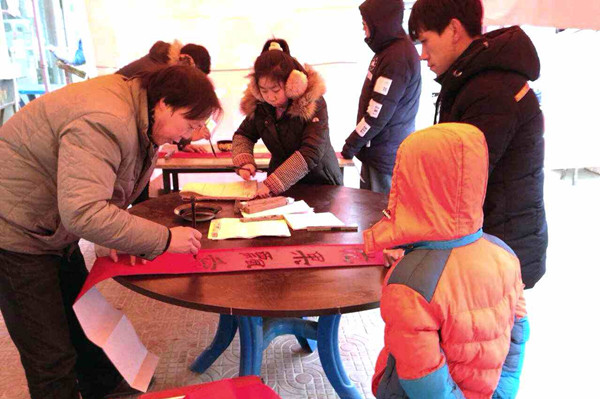 寫春聯(lián)、貼年畫是象征吉祥和向往美好生活的民風(fēng)民俗,更是中華民族代代相傳的悠久文化傳統(tǒng)。為即將臨近的猴年新春送上一年之始誠摯的祈盼和祝福,為商洛大地喜迎佳節(jié)增添一份祥和歡慶的熱鬧景象,進(jìn)一步豐富我市鄉(xiāng)鎮(zhèn)群眾的新年文化生活,感受優(yōu)秀傳統(tǒng)文化延綿醇厚的藝術(shù)魅力,不斷提高藝術(shù)學(xué)院學(xué)生的專業(yè)應(yīng)用能力、社會適應(yīng)能力,砥礪意志品格,結(jié)合美術(shù)學(xué)專業(yè)的實踐與應(yīng)用,增強(qiáng)對社會公益活動的參與意識和服務(wù)意識,藝術(shù)學(xué)院連續(xù)第3年開展了寫春聯(lián)、送春聯(lián)下鄉(xiāng)服務(wù)群眾實踐活動,為群眾寫送春聯(lián)近5000副,贏得了各鄉(xiāng)鎮(zhèn)群眾的廣泛好評。
