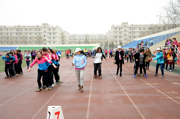 本次運動會以“建功十三五,巾幗展風采”為主題,我校女教職工代表隊參加了跳小繩、障礙跑接力賽、夾投乒乓球穿梭接力賽和雙腳綁板賽全部4個項目的比賽。我校隊員在賽場上不屈不撓、奮力拼搏,充分體現了團隊協作的精神,展示了我校女教職工積極上進的精神風貌。