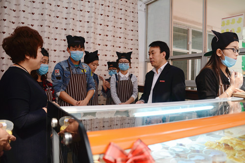 彭虎軍、金淑霞走進(jìn)“哈尼烘焙”屋與師生交流,參觀制作流程,詢問項(xiàng)目運(yùn)營情況,并鼓勵(lì)團(tuán)隊(duì)成員積極探索、勇于創(chuàng)新。教務(wù)處、學(xué)生處、招生就業(yè)處、校團(tuán)委、保衛(wèi)處、后勤保障處、生物醫(yī)藥與食品工程學(xué)院等單位相關(guān)負(fù)責(zé)人及“哈尼烘焙”屋創(chuàng)業(yè)團(tuán)隊(duì)成員共同見證“哈尼烘焙”屋揭牌。