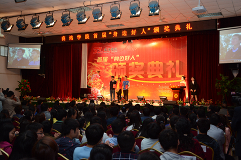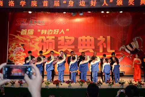 4月15日,我校舉辦首屆“身邊好人”頒獎典禮,于浩世等9位師生中涌現(xiàn)出的“身邊好人”登臺亮相。商洛市委常委、宣傳部部長劉淑慧,校黨委書記、校長劉建林等分別為他們頒獎。商洛市委宣傳部副部長、文明辦主任李丹峰,市文明辦副主任黃強(qiáng),校領(lǐng)導(dǎo)范新會、王思懷、魏書堂,處科級干部、全體輔導(dǎo)員及師生代表400余人參加了頒獎典禮。