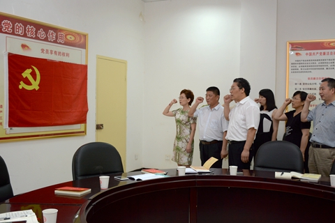 在黨的第95個(gè)生日來(lái)臨之際,機(jī)關(guān)八黨支部于6月30日開(kāi)展了慶祝建黨95周年主題黨日活動(dòng)。校黨委副書(shū)記、副校長(zhǎng)范新會(huì)參加活動(dòng),與機(jī)關(guān)八支部全體黨員一同重溫入黨誓詞、誦讀黨章,并聽(tīng)取了支部書(shū)記講黨課。