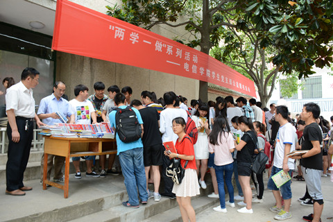 為扎實推進“兩學一做”學習教育,深入學習黨規(guī)黨章及習近平總書記系列重要講話精神,使“學”得深入、“做”得有效,7月7日,電子信息與電氣工程學院學生黨支部舉辦的“兩學一做”公益贈書活動在中心花園展開。