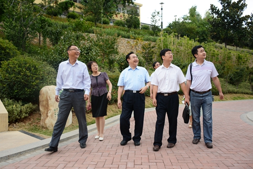 在參觀莘子苑、運(yùn)動(dòng)景觀平臺、體育場等處時(shí),樊代明院士對我校依山而建的山水園林校園、清新雅靜的讀書學(xué)習(xí)環(huán)境表示贊賞。