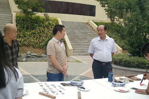 9月14日下午,藝術(shù)學院舉辦了以“迎國慶 慶中秋”為主題的書畫筆會。師生們在莘梓苑鋪開畫布,飽蘸濃墨,現(xiàn)場揮毫,共慶中秋佳節(jié)和祖國華誕的到來。黨委書記、校長劉建林現(xiàn)場觀看了師生創(chuàng)作的書畫作品。
