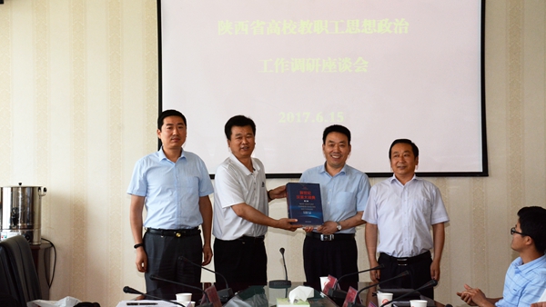 6月15日,由陜西省教育工會(huì)副主席陳鵬帶隊(duì),由西安外國語大學(xué)工會(huì)主席趙沛、思政部副主任張親霞等一行7人組成的課題調(diào)研組來我校,對我校教職工思想政治工作開展調(diào)研。校黨委書記龍治剛會(huì)見了調(diào)研組成員。校黨委副書記、工會(huì)主席彭虎軍陪同會(huì)見,并與調(diào)研組進(jìn)行座談。座談會(huì)由趙沛主持。