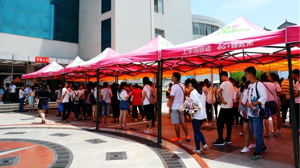 6月18日,是陜西省普通高校招生外語口語考試日。上午7:30開始,1541名考生陸續(xù)從商洛各地趕赴我校,在學(xué)生志愿者的引導(dǎo)下,有序排隊(duì)進(jìn)入考場參加考試,家長則在指定區(qū)域休息等候。