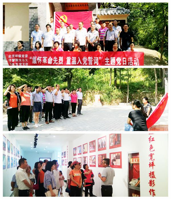 ——我校基層黨組織與北寬坪鎮(zhèn)黨委共慶“七一”。7月1日,我校經(jīng)管學(xué)院黨總支、機(jī)關(guān)五黨支部與北寬坪鎮(zhèn)黨委聯(lián)合舉行慶“七一”主題黨日活動,參觀紅色舊址,緬懷革命先烈,重溫入黨誓詞,接受傳統(tǒng)教育,獻(xiàn)禮黨的生日。北寬坪鎮(zhèn)黨委書記古天性現(xiàn)場為大家講黨課,北寬坪鎮(zhèn)鎮(zhèn)長王彥鋒全程為大家講解。