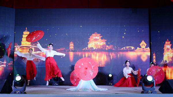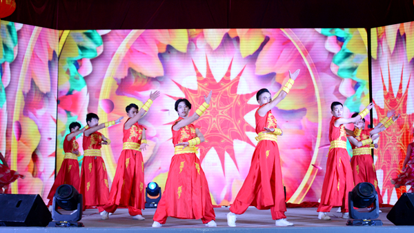 晚會(huì)結(jié)束后,校領(lǐng)導(dǎo)與全體演職人員合影留念。