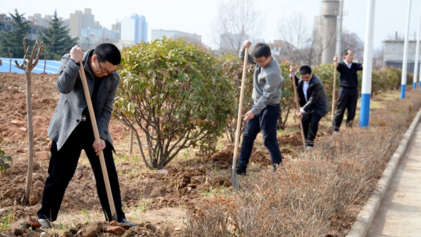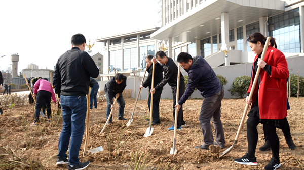 陽春三月,草長鶯飛,正是植樹好時(shí)節(jié)。3月1日下午,機(jī)關(guān)一、機(jī)關(guān)二黨總支組織黨員開展了“為校園添綠”主題黨日活動(dòng)。副校長魏書堂與機(jī)關(guān)80余名黨員在新建綜合樓前栽樹種花,綠化校園。后勤保障處全體職工、機(jī)關(guān)部分民主黨派成員及職工參加活動(dòng)。