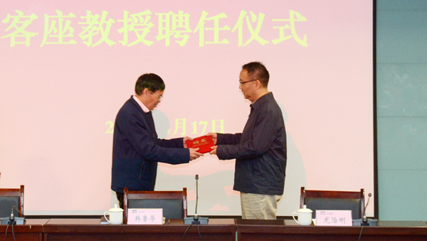 4月17日,我校舉行聘任儀式,聘任賈平凹研究專家韓魯華為客座教授。黨委書記龍治剛、紀委書記王思懷出席聘任儀式。人事處、教務處、科技處負責人,人文學院和商洛文化暨賈平凹研究中心全體教師及學生代表參加了聘任儀式。聘任儀式由王思懷主持。
