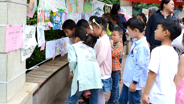 莘子園綠樹成蔭,水聲潺潺,氣球鮮艷奪目,活動現(xiàn)場人頭攢動,歡聲笑語,大家共同欣賞一幅幅展示兒童內(nèi)心世界,充滿豐富想象力和創(chuàng)造力的藝術(shù)作品。