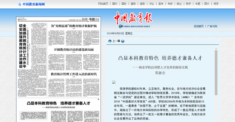 校長(zhǎng)范新會(huì)在《中國(guó)教育報(bào)》2018年8月3日第3版發(fā)表署名文章《凸顯本科教育特色 培養(yǎng)德才兼?zhèn)淙瞬拧搪鍖W(xué)院應(yīng)用型人才培養(yǎng)的探索實(shí)踐》,全文如下: