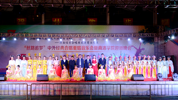 9月20日晚,由教育部、文化和旅游部、財政部主辦的2018年“高雅藝術進校園”活動——陜西佳音合唱團“絲路追夢”中外經(jīng)典合唱重唱專場音樂會暨我校迎新晚會在體育場隆重舉辦。黨委書記龍治剛,校長范新會,黨委副書記彭虎軍,陜西佳音合唱團團長、指揮西安電子科技大學周偉教授,合唱團藝術總監(jiān)西安交通大學馬西平教授,合唱團導聆西安音樂學院藝術處處長劉寶玲出席活動。