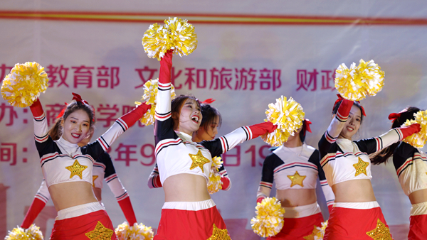 我校師生也獻上了《花球啦啦操》《司花令》《敦煌舞韻》《風吹麥浪》《夢桃仙》等9個精彩紛呈的節(jié)目,歌聲動聽,舞蹈炫目,笛聲飄揚?;ㄇ蚶怖膊僬蔑@青春活力,展現(xiàn)了我校學子多才多藝、昂揚向上的精神面貌。笛子獨奏《收割》歡快火爆,不絕于耳,使觀眾感受到了勞動人民的奮斗精神與收獲的喜悅。晚會在《秦嶺里最美的地方是商洛》的歌聲中完美落下帷幕。