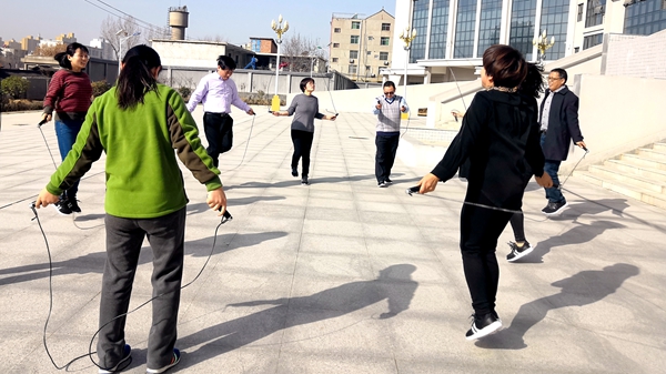 ——跳繩比賽。11月28日上午,馬克思主義學院在8號教學樓前舉辦了教職工跳繩比賽。全體在崗教職工熱情高漲、積極參賽,比賽現(xiàn)場氣氛熱烈,一片歡騰景象,一根根跳繩飛舞,一個個龍騰虎躍,現(xiàn)場不時響起歡呼聲與掌聲,伴隨跳繩擦過地面的清脆響聲,現(xiàn)場氣氛一次次推向高潮。