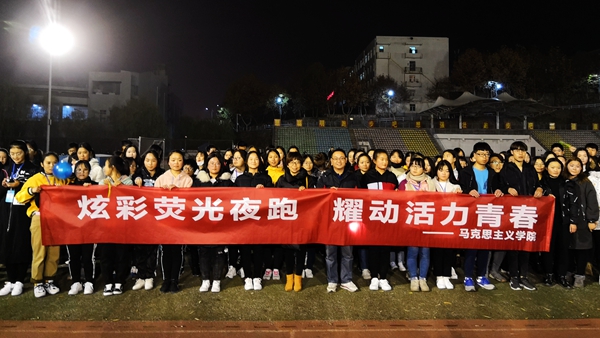 ——熒光夜跑活動。11月26日晚,馬克思主義學院在學校操場舉辦以“炫彩熒光夜跑,耀動青春活力”為主題的夜跑活動,200多名師生參加了此次活動?;顒娱_始后,師生們手帶熒光環(huán)、揮舞熒光棒,在慢跑中欣賞夜色中的校園,用自己的青春和活力為校園增添靚麗風景。夜跑結(jié)束后,大家還一起進行了有趣的互動游戲,在歡樂的氛圍中享受運動的樂趣,增進彼此的友誼。