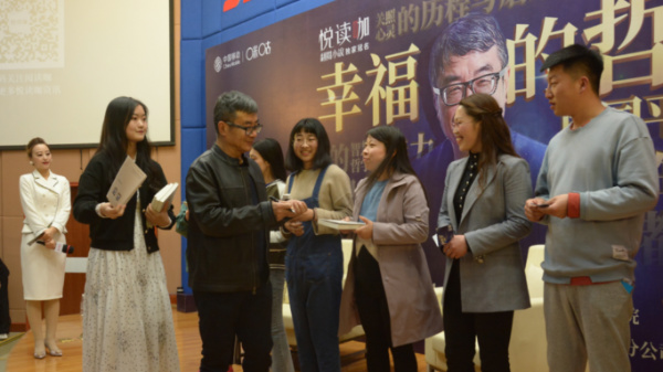 周國平先生從哲學(xué)角度入手,對“幸福是什么”作了具體闡述,他認(rèn)為幸福就是讓生命和精神有良好品質(zhì)和狀態(tài),做到生命的單純和精神的優(yōu)秀,把‘命照看好,心安頓好’,人生就是幸福的。他結(jié)合自身經(jīng)歷,從愛情與親情、事業(yè)、閱讀與寫作三個方面向大家講述了幸福的本質(zhì)與內(nèi)涵。他指出,所有的不平凡都要回歸平凡,人生中那些最本質(zhì)的幸福是簡單且平凡的,要享受愛情、親情等自然感情,珍惜平凡的生活。他還指出,一個人的能力分為一般的智力品質(zhì)與每個人的獨(dú)特稟賦兩個層次。他鼓勵青年學(xué)生在大學(xué)階段培養(yǎng)智力活動的興趣和習(xí)慣,努力讓自己具備對世界及對事物的好奇心和獨(dú)立思考的能力。對于閱讀與寫作,他建議同學(xué)們通過寫日記的習(xí)慣來保留生命中的點(diǎn)滴,在寫作中剖析、審視生活,同時還要閱讀閃耀著思想光輝的經(jīng)典作品,與優(yōu)秀的靈魂對話。