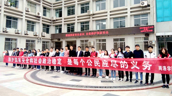 本次“全民國(guó)家安全教育日”宣傳活動(dòng)由我校和商洛市國(guó)家安全局聯(lián)合舉辦,活動(dòng)現(xiàn)場(chǎng)共懸掛橫幅5條,張貼海報(bào)25張,擺放展板11張,散發(fā)宣傳材料3000余份,贈(zèng)送印有國(guó)家安全知識(shí)的筆筒、手提袋、扇子等禮品1000多件?;顒?dòng)期間,還通過(guò)召開(kāi)主題班會(huì),QQ群、微信群推送國(guó)家安全知識(shí),LED電子熒屏滾動(dòng)播放國(guó)家安全標(biāo)語(yǔ)等多種形式營(yíng)造了濃厚的活動(dòng)氛圍、宣傳了國(guó)家安全知識(shí)。