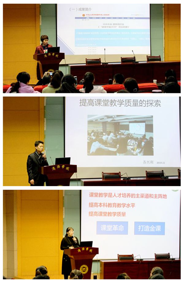 報告會上,和新盈作了題為《基于OBE教育理念,面向基層卓越醫(yī)生培養(yǎng)的形態(tài)實驗教學(xué)新體系構(gòu)建與實踐》的報告,從宏觀角度向大家展示了如何選題、組織、申報教學(xué)成果獎;蘇興利作了題為《提高課堂教學(xué)質(zhì)量的探索》的報告,他結(jié)合自己的切身體會,與大家分享了如何做一名好老師,如何上好一堂課;鄭慧媛以《對分課堂在胚胎學(xué)教學(xué)中的應(yīng)用與探索》為題,向大家講解了陜西省第一屆課堂教學(xué)改革創(chuàng)新大賽的比賽形式、參賽準(zhǔn)備,并為大家進(jìn)行了現(xiàn)場示范教學(xué)。三位專家的報告精彩紛呈、形式多樣,與會教師紛紛表示,本次報告會啟發(fā)了思路,開拓了視野,今后將努力汲取專家報告的精華為我所用,不斷提高課堂教學(xué)水平。