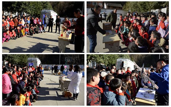 龍治剛表示,此次活動(dòng)既是我校2019年“雙百工程”工作的完美收官,也拉開了我校助力2020年實(shí)現(xiàn)全國(guó)全面脫貧、全面實(shí)現(xiàn)小康社會(huì)的序幕,意義重大。他表示,我校作為“雙百工程”校地合作單位,始終按照省委省政府工作部署,與丹鳳縣積極進(jìn)行對(duì)接,通過(guò)頂崗支教、舉辦學(xué)前教育論壇、加強(qiáng)基礎(chǔ)教育師資培訓(xùn)、助力少兒足球示范幼兒園建設(shè)等方式,積極拓展對(duì)丹鳳縣基礎(chǔ)教育的幫扶面,創(chuàng)新幫扶形式,為助力丹鳳縣基礎(chǔ)教育扶貧注入了全新的活力,取得了可喜的成績(jī),切實(shí)踐行了我校根植地方、服務(wù)商洛的使命擔(dān)當(dāng)。今天的活動(dòng),讓科普前沿貼近校園,拓展了山區(qū)孩子們的知識(shí)視野、啟迪了他們的創(chuàng)新思維,激發(fā)了他們愛科學(xué)、學(xué)科學(xué)的熱情和科學(xué)報(bào)國(guó)的志向。今后,我校將繼續(xù)與丹鳳縣進(jìn)行深入合作,開出校地合作友誼之花、發(fā)展之果,使合作越來(lái)越密切、有成效。龍治剛還與現(xiàn)場(chǎng)小學(xué)生進(jìn)行親切互動(dòng),詢問(wèn)他們愛科學(xué)嗎?想上大學(xué)嗎?并鼓勵(lì)小朋友們好好學(xué)習(xí),天天向上,成為國(guó)家棟梁。