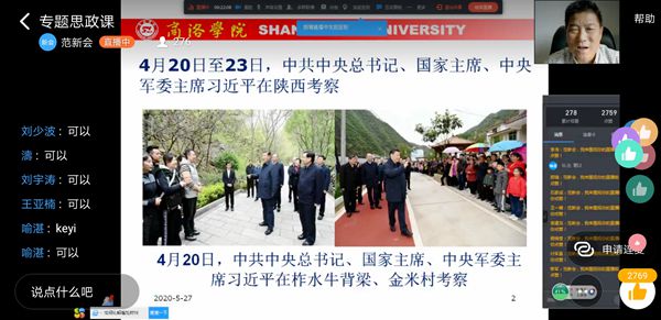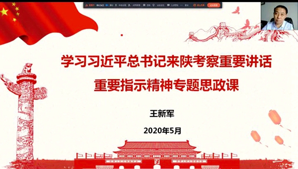 4月20日至23日,習(xí)近平總書記來陜考察并發(fā)表重要講話,為陜西譜寫新時(shí)代追趕超越新篇章鼓舞了士氣、指明了方向,在全省人民群眾中引發(fā)了熱烈反響。學(xué)習(xí)好、宣傳好、貫徹好習(xí)近平總書記重要講話重要指示精神,是當(dāng)前和今后一個(gè)時(shí)期全校的首要政治任務(wù)。5月27日,按照校黨委的統(tǒng)一安排,我校7位校領(lǐng)導(dǎo)與2000余名青年學(xué)生“云端”共聚,以線上專題思政課的形式把學(xué)習(xí)習(xí)近平總書記來陜考察重要講話重要指示精神引向深入,在全校上下掀起新一輪的學(xué)習(xí)熱潮。