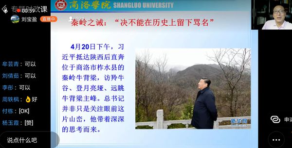 整堂思政課持續(xù)了近兩個(gè)小時(shí),師生反響熱烈,評(píng)論區(qū)里各種點(diǎn)贊、學(xué)習(xí)、加油此起彼伏?!袄蠋熤v的真好!”“點(diǎn)贊校長(zhǎng)”“向習(xí)大大學(xué)習(xí)”“成長(zhǎng)于大秦嶺腳下的我太驕傲了”“追趕超越也有我”“小木耳大產(chǎn)業(yè),習(xí)近平總書記太暖心”“‘西遷精神’最令我印象深刻。”……直播間的彈幕不停地在滾動(dòng),校領(lǐng)導(dǎo)們深刻又生動(dòng)的講解不斷吸引新的師生加入收看,開播一小時(shí)后,師生點(diǎn)贊數(shù)已過5萬。還有同學(xué)留言說,家人朋友也與自己一同收看了這堂生動(dòng)的“網(wǎng)絡(luò)思政課”。