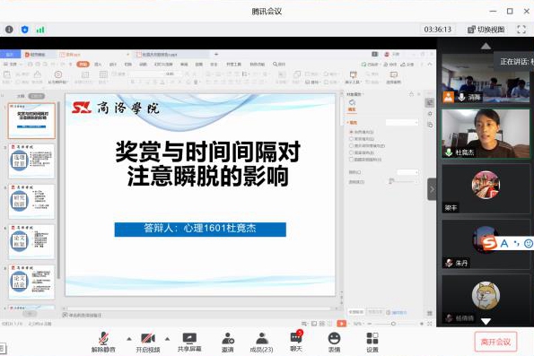 ——線上答辯、井然有序。各學院根據實際情況采取線下線上相結合的方式組織論文答辯。近2000名學生使用騰訊會議、騰訊課堂、釘釘?shù)确€(wěn)定、流暢的網絡平臺,通過在線直播互動或視頻會議方式進行論文答辯。各學院根據本院師生的論文寫作與指導進展情況,認真組織籌劃,嚴守時間節(jié)點,科學制定本學院畢業(yè)論文(設計)答辯方案及成績評定規(guī)范,提前做好在線答辯細節(jié)演練,分配好答辯小組,嚴密答辯流程,確保了答辯工作與往年現(xiàn)場答辯相比等質同效、水準不降。在線上答辯中,合理分配任務,做好排序通知,保持答辯順暢進行。在線下現(xiàn)場答辯中,做好室內消殺、開窗通風,避免人員聚集,嚴格落實各項防控措施。