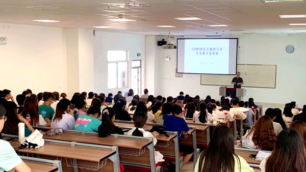 張博副教授現(xiàn)任全國大學生數學建模競賽陜西賽區(qū)組委會副秘書長兼辦公室主任,他以《數學建模論文摘要寫作和競賽注意事項》為題作數學建模專題報告。我校參加2020年全國大學生數學建模競賽的學生和指導教師聆聽了張教授的精彩報告。報告借助建模摘要典型案例分析,詳解了建模競賽論文摘要的寫作方法,介紹了競賽期間建模論文的提交、相似度檢測以及競賽紀律等注意事項,鼓勵師生堅定信心、積極備賽。