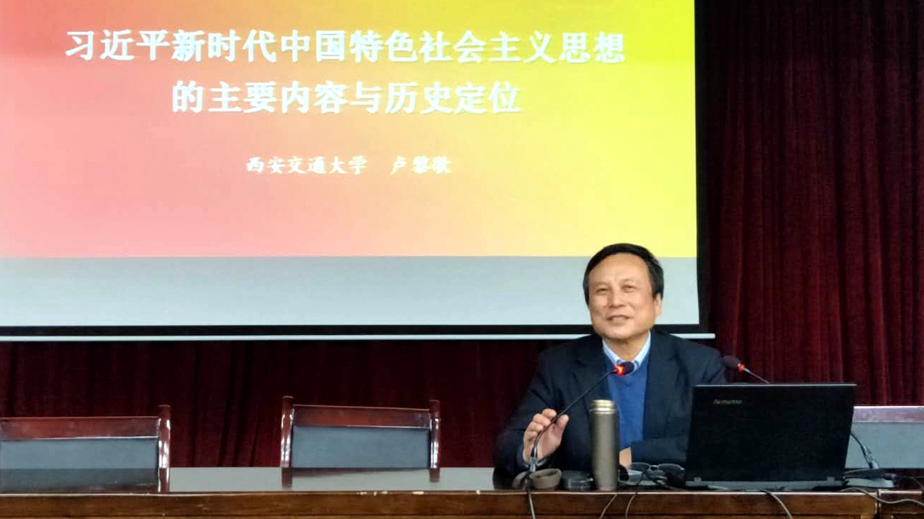 10月18日晚,西安交通大學(xué)馬克思主義學(xué)院博士生導(dǎo)師、陜西省教學(xué)名師、國務(wù)院政府特殊津貼專家盧黎歌教授,以“習(xí)近平新時代中國特色社會主義思想的歷史地位和主要內(nèi)容”為題為我校馬克思主義學(xué)院全體師生作學(xué)術(shù)報告。