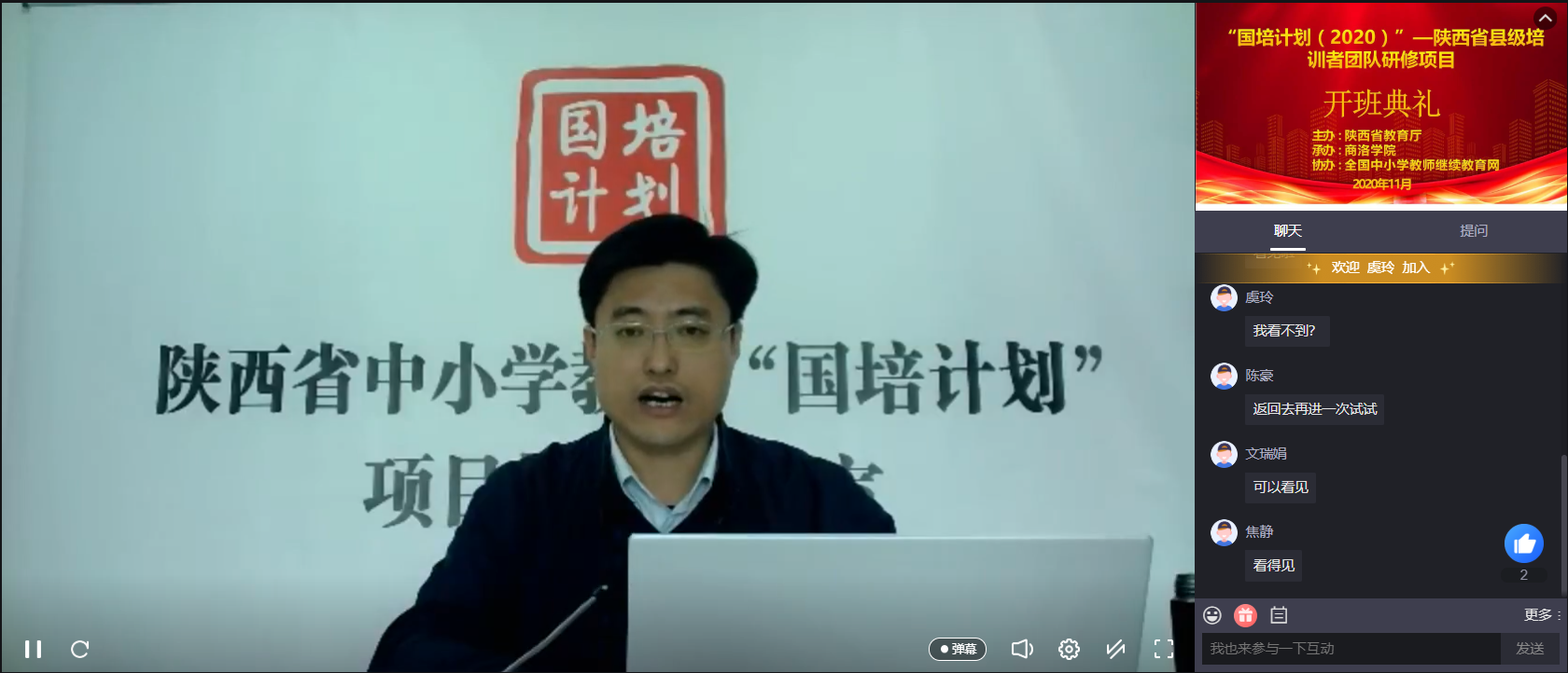陜西省教育廳國培計(jì)劃項(xiàng)目執(zhí)行辦公室主任沈善良介紹了2020年我省國培計(jì)劃項(xiàng)目設(shè)置情況,對(duì)項(xiàng)目縣培訓(xùn)團(tuán)隊(duì)研修項(xiàng)目政策作了解讀。我校繼續(xù)教育學(xué)院副院長任新山向?qū)W員介紹了項(xiàng)目的階段安排、培訓(xùn)任務(wù)。培訓(xùn)項(xiàng)目組對(duì)培訓(xùn)方案做了說明。