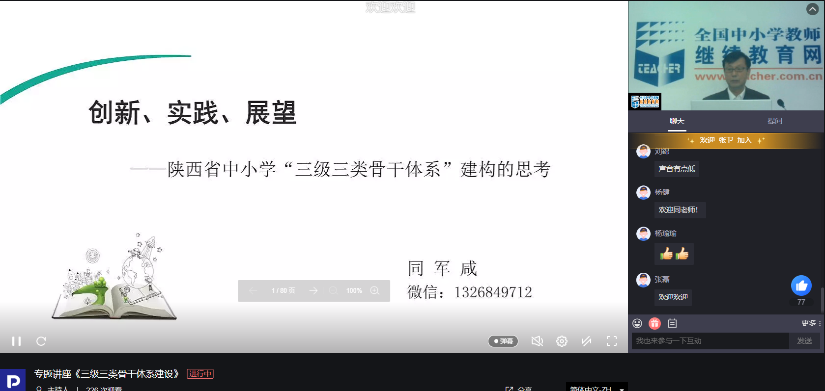 開班典禮后,沈善良為學(xué)員在線上作了《縣級(jí)培訓(xùn)者團(tuán)隊(duì)研修項(xiàng)目政策解讀》專題報(bào)告,當(dāng)天下午,陜西教育科學(xué)研究所教研室主任同軍咸為學(xué)員作了題為《三級(jí)三類骨干體系建構(gòu)》的講座。