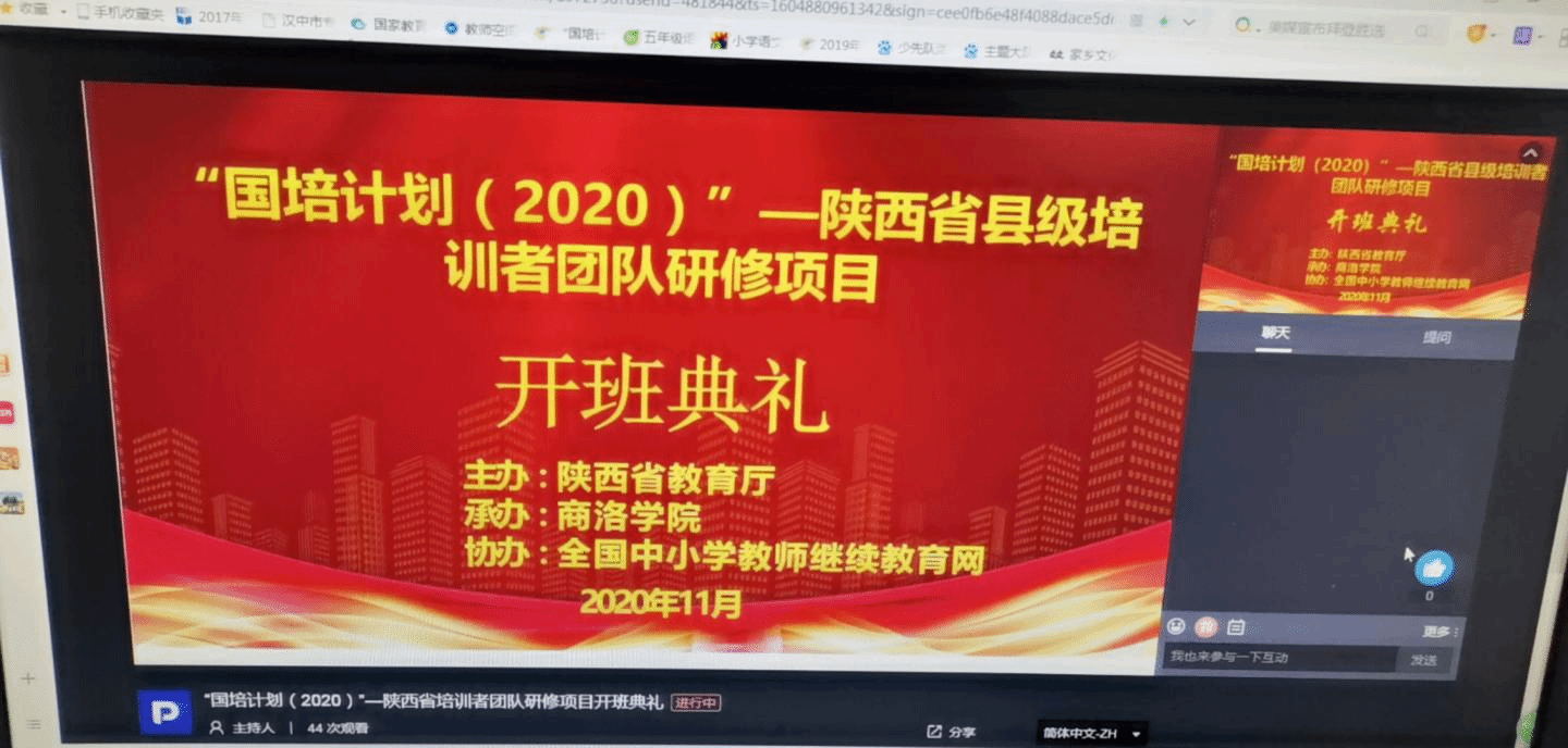 11月9日,由我校承辦、全國中小學(xué)繼續(xù)教育網(wǎng)協(xié)辦的“國培計(jì)劃2020”——陜西省勉縣教師培訓(xùn)團(tuán)隊(duì)研修項(xiàng)目舉行了線上開班典禮。