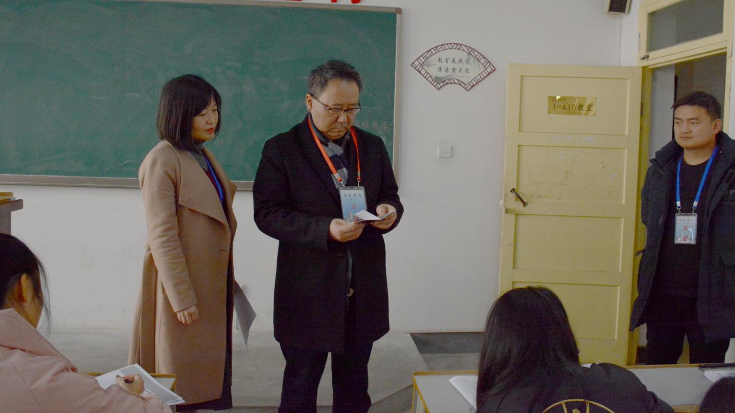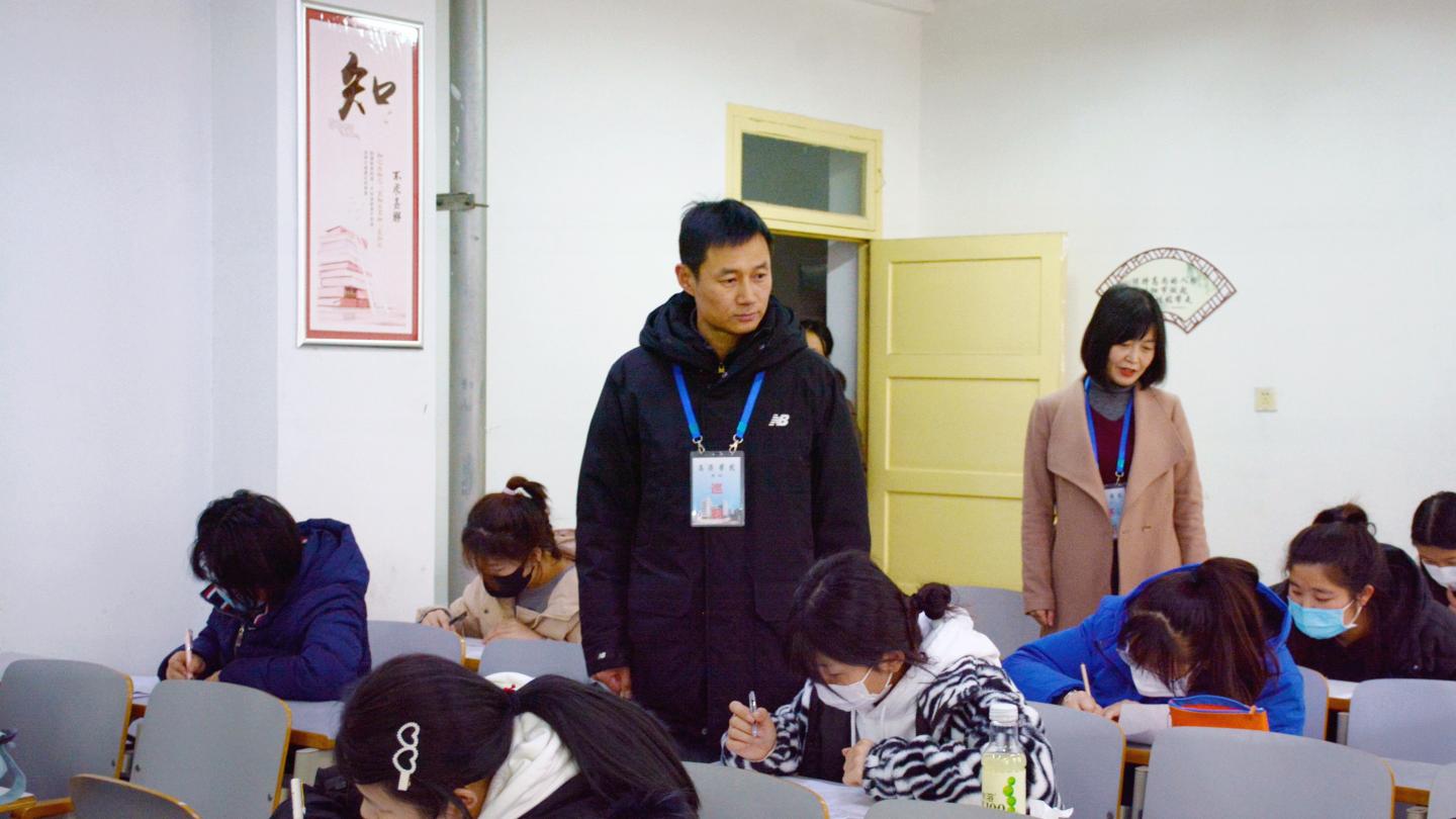 為進(jìn)一步加強(qiáng)我??荚嚬芾?,嚴(yán)肅考風(fēng)考紀(jì),確保2020-2021學(xué)年第一學(xué)期期末考試工作順利進(jìn)行,1月4日—5日,校黨委書記龍治剛、校長范新會(huì)、黨委副書記劉勇在教務(wù)處負(fù)責(zé)人的陪同下,分別深入北新街校區(qū)及丹江校區(qū)各考場檢查工作,實(shí)地了解考場環(huán)境秩序、疫情防控措施落實(shí)、學(xué)生考試狀態(tài)等情況,聽取相關(guān)工作匯報(bào)。