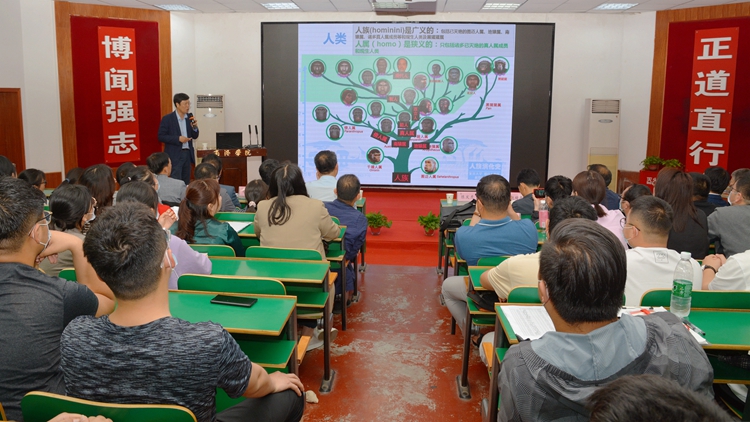 5月13日,中國科學(xué)院院士、發(fā)展中國家科學(xué)院院士、中國科學(xué)院青藏高原研究所所長、中國地理學(xué)會理事長、我校兼職教授陳發(fā)虎為師生代表作了題為“夏河丹尼索瓦古老型智人、現(xiàn)代智人興起與史前人類定居青藏高原”的學(xué)術(shù)報告。黨委書記龍治剛主持報告會。中科院青藏高原所科研教育處處長汪亞峰、商洛市科技局局長趙緒春,副校長王新軍出席報告會。我校師生代表200余人聽取報告。