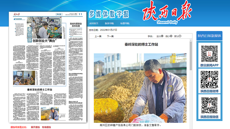 1月27日,《陜西日報》科技版以《秦嶺深處的博士工作站》為題,專題報道了我校與陜西森弗天然制品有限公司開展產(chǎn)學(xué)研合作,建立博士工作站,助力科技成果轉(zhuǎn)化,服務(wù)產(chǎn)業(yè)升級,帶動地方發(fā)展和鄉(xiāng)村振興的工作成果。