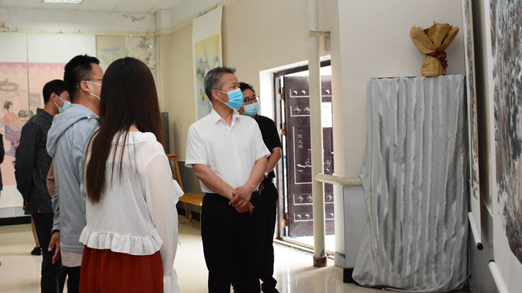 5月31日上午,校黨委書(shū)記張志昌,黨委副書(shū)記彭虎軍、劉勇,副校長(zhǎng)劉寶盈前往圖書(shū)館藝術(shù)展廳參觀指導(dǎo)藝術(shù)學(xué)院美術(shù)學(xué)國(guó)畫(huà)方向2022屆畢業(yè)作品匯報(bào)展。黨委辦公室負(fù)責(zé)人、藝術(shù)學(xué)院黨政負(fù)責(zé)人和師生代表陪同參觀。