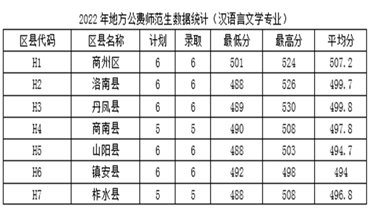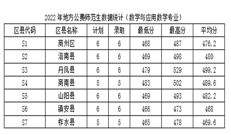 2022年我校面向全省招收定向商洛市7個(gè)區(qū)、縣就業(yè)的新生80人,其中漢語言文學(xué)專業(yè)40人,數(shù)學(xué)與應(yīng)用數(shù)學(xué)專業(yè)40人。各區(qū)縣生源地招生錄取人數(shù)占比分布平均,商州區(qū)、洛南縣、丹鳳縣、山陽縣、鎮(zhèn)安縣分別為15%,商南縣、柞水縣分別為12.5%。
