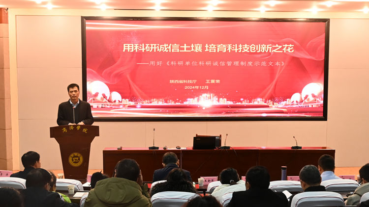 王震榮作了題為《用科研誠(chéng)信土壤培育科技創(chuàng)新之花——用好<科研單位科研誠(chéng)信管理制度示范文本>》的報(bào)告。報(bào)告詳細(xì)介紹了科研誠(chéng)信在科技創(chuàng)新體系中的基石地位,并對(duì)《科研單位科研誠(chéng)信管理制度示范文本》進(jìn)行了深入解讀。