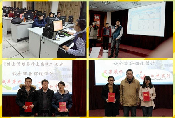 為進一步深化校企聯合培養(yǎng)應用型人才模式,提高課程設計的應用性和創(chuàng)新性,2015年,經濟與管理學院再次與維多利亞教育集團中國總部——加中實訓基地進行深度合作,聘請企業(yè)工程師為外聘教師來校授課、與實訓基地建立長期的綜合實習合作關系,并在本學期末特邀基地資深工程師齊巖、王玉芳、王杰3位實訓教師來校為信息管理與信息系統專業(yè)2013級學生進行課程設計指導。