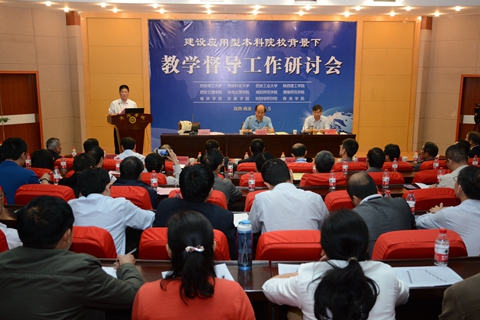5月21日,由我校組織舉辦的“建設應用型本科院校背景下教學督導工作研討會”在圖書館一樓報告廳召開。西安理工大學、西安科技大學、陜西理工學院、西安文理學院、寶雞文理學院等全省11所高校的教學督導專家齊聚我校,交流教學督導工作經驗,探討在建設應用型本科院校背景下督導工作對構建、完善本科教學質量保障體系和提升教學質量的意義。校黨委書記、校長劉建林出席研討會并致辭。西安科技大學副校長韓江水出席研討會并作題為《審核評估與教學督導》的主題報告。研討會由校黨委副書記、副校長范新會主持。
