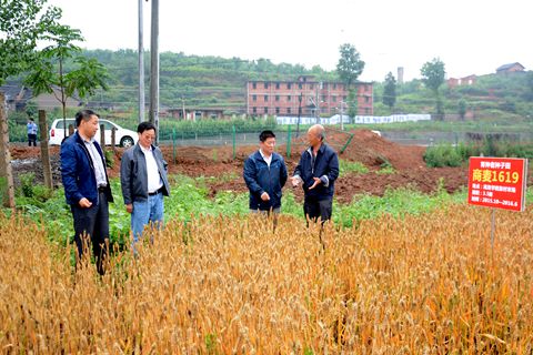 在商州區(qū)劉灣、張村試驗田和商南縣富水鎮(zhèn)茶房村50畝種植示范田里,我校商麥“1619”和商麥“131232”顆粒飽滿、麥浪金黃、長勢喜人,一片豐收在望的景象。范新會深入示范田,向農(nóng)技人員關(guān)切地詢問小麥的長勢,詳細了解了兩個小麥品種的生長特點、抗病情況、預(yù)期產(chǎn)量及推廣面積等。