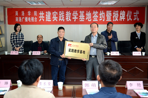10月8日,我校與商洛廣播電視臺簽訂實踐教學基地協(xié)議,校黨委副書記、副校長范新會向商洛廣播電視臺臺長鞏文超授牌。授牌儀式由商洛廣播電視臺總編輯黨銀平主持。